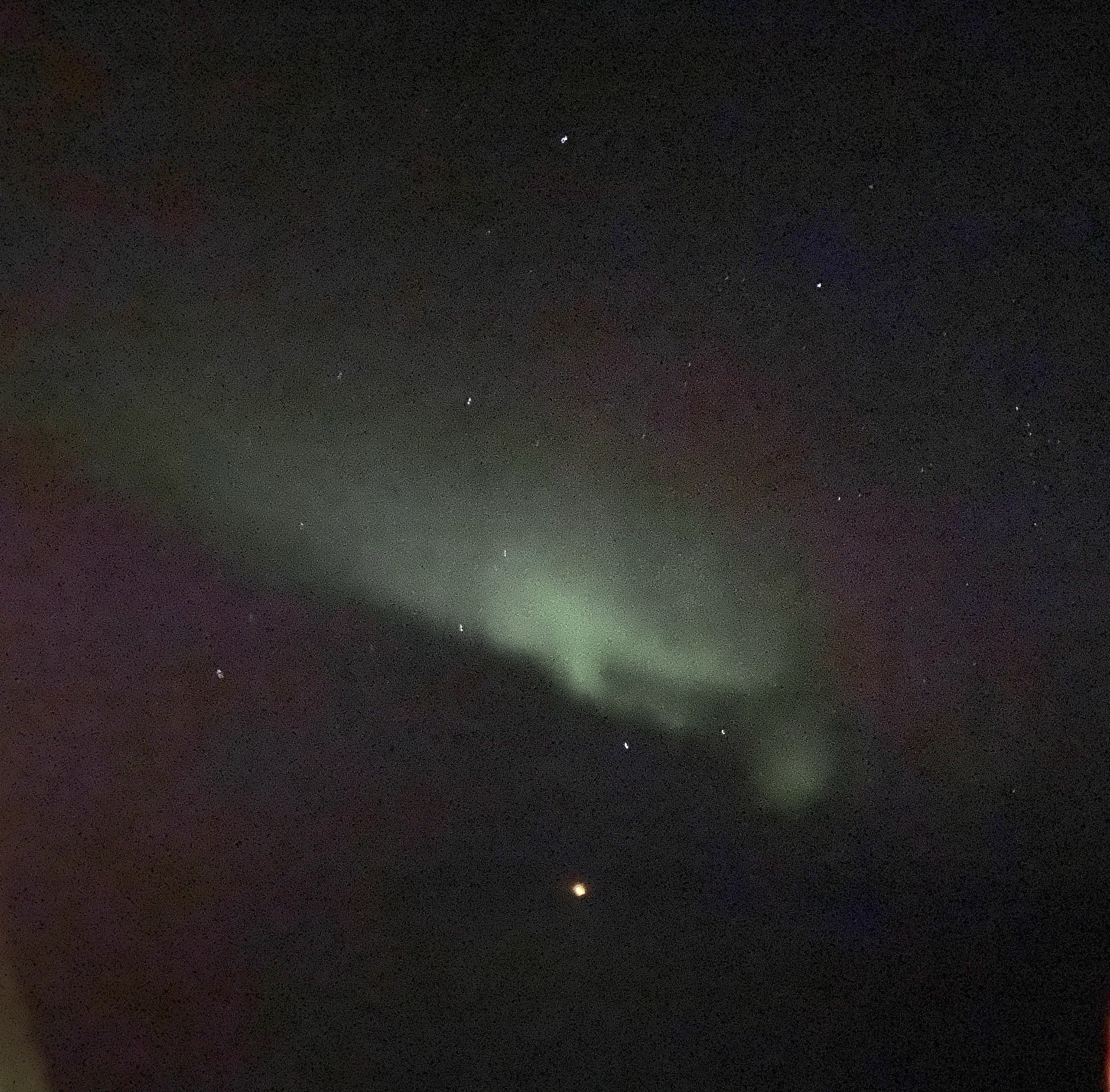 In my bed, if I slept on my side, the movement would send me onto my back. If I sat up, the vibration would have me sliding down flat. It was hard to get comfortable enough to sleep soundly and I had to keep one arm on the nightstand to keep things from falling off. I was never concerned and thankfully neither of us felt ill. In fact, we were both a little excited for the turbulence. I think it was 4:00 am when Yordie stood looking out the window squealing with delight. She had been wishing for this all trip and she finally got it. I wanted the Northern Lights and she wanted some rough water. Both have beens satisfied.